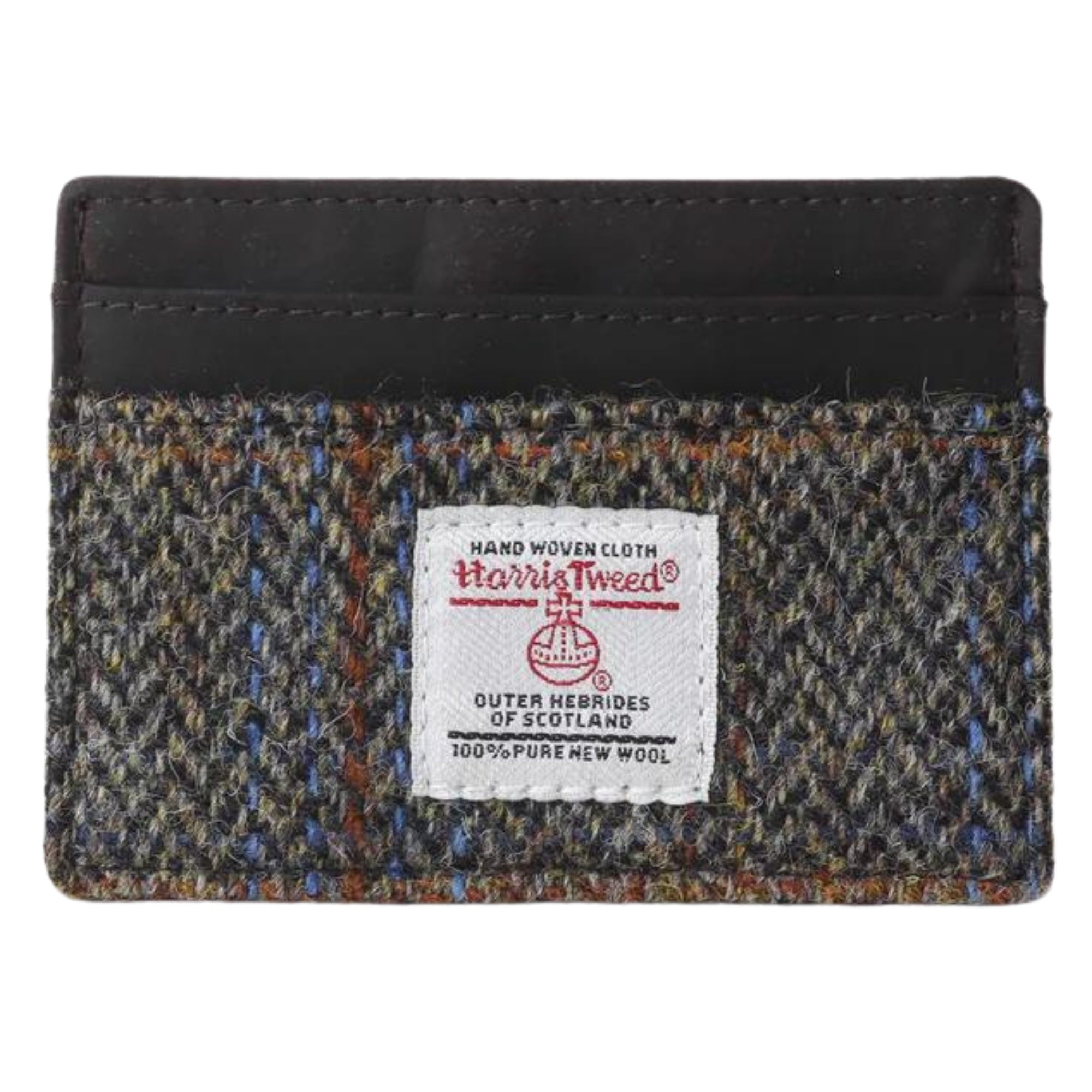 This traditional blur Harris Tweed pattern features verdant and sienna tones with a subtle hint of scarlet, coupled with a velvety dark brown leather that adds to its distinguished English heritage feel. An ideal gift for yourself or for a loved one. Made with the finest materials for maximum durability, this elegant card holder offers a timeless design that will never go out of style.