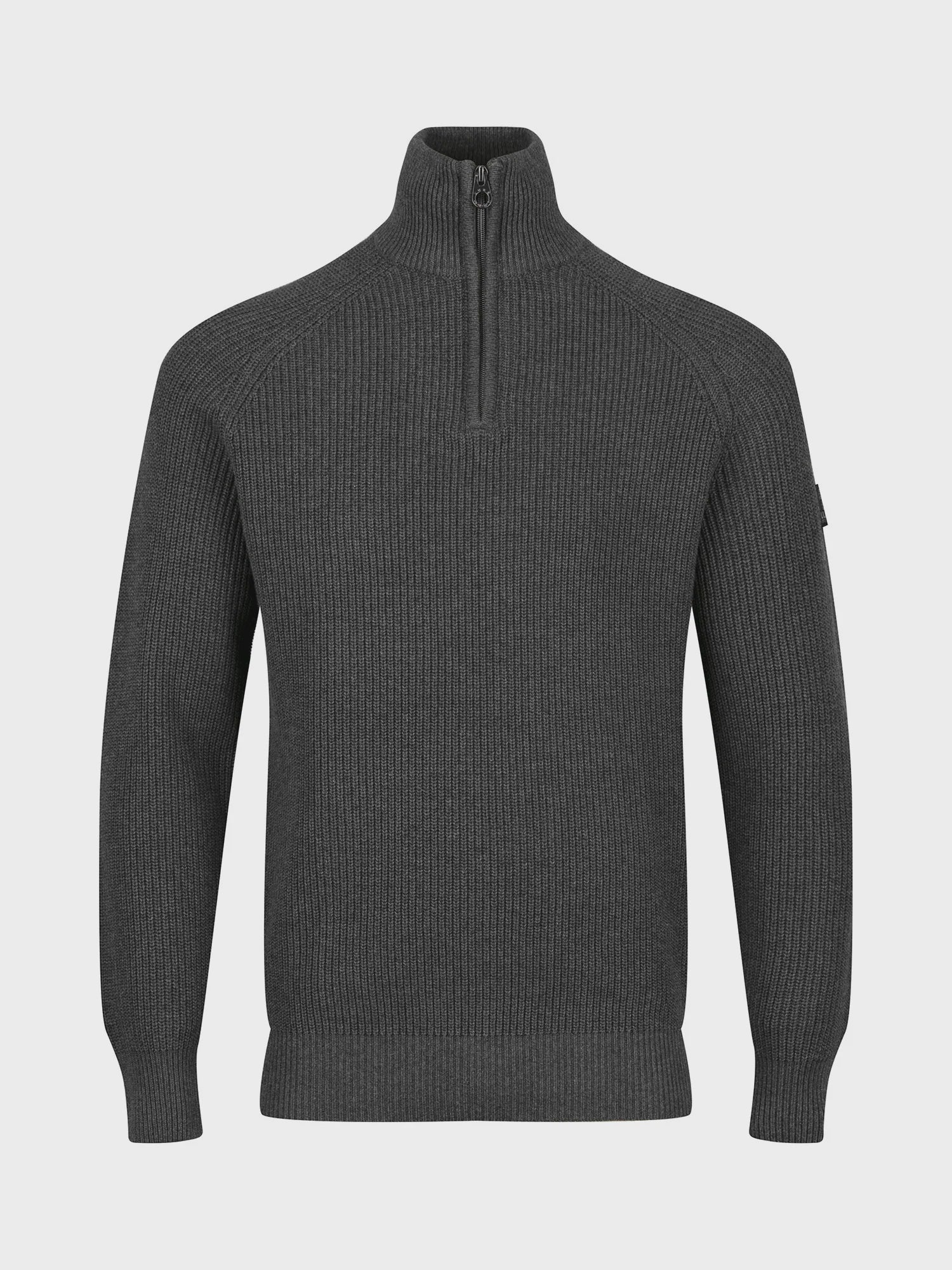 Luke 1977 Watton Plated 1/4 Zip Knitted Jumper - Charcoal